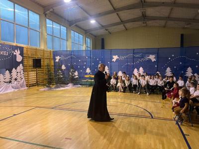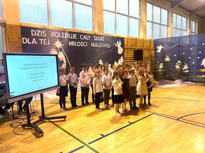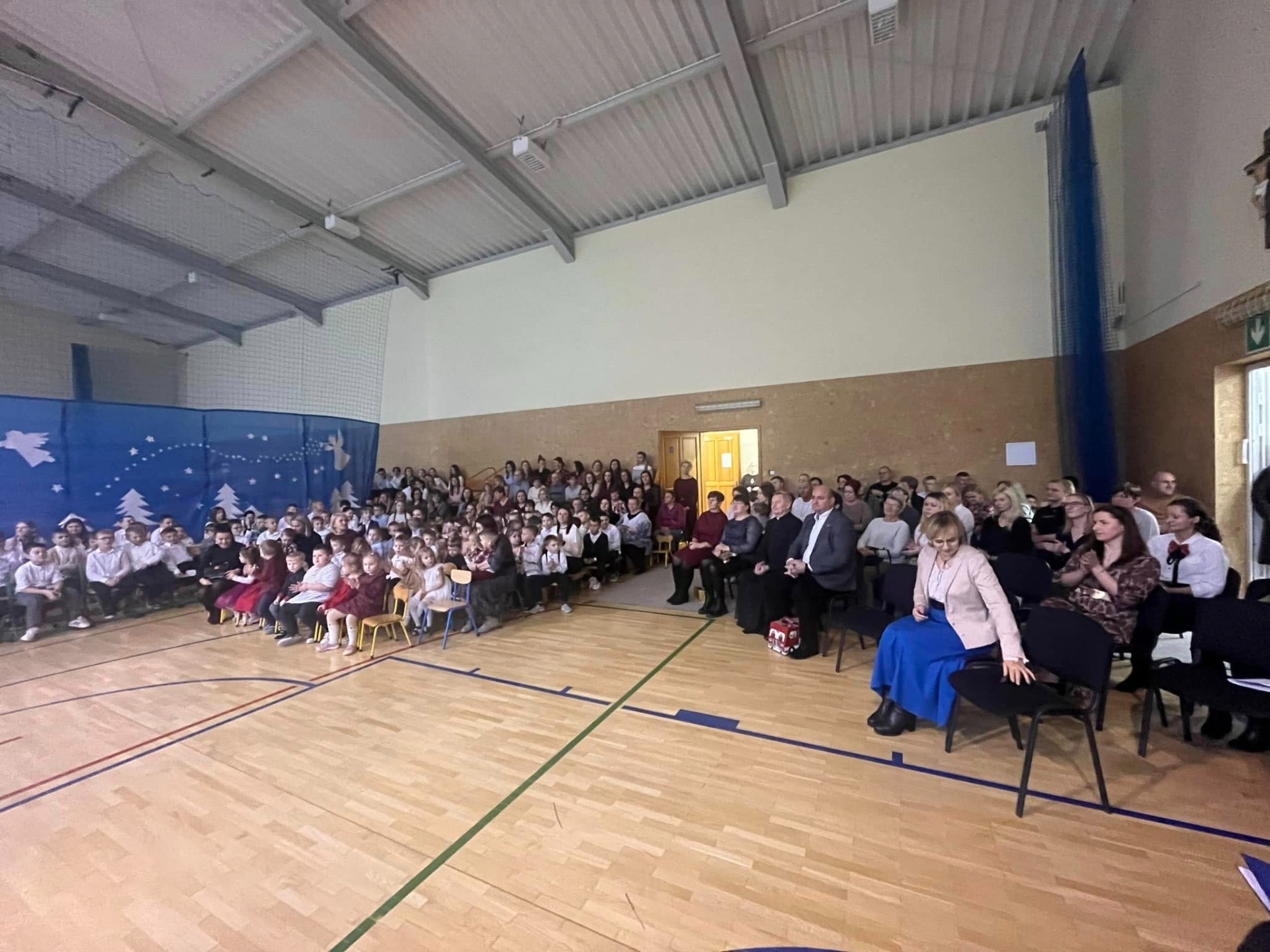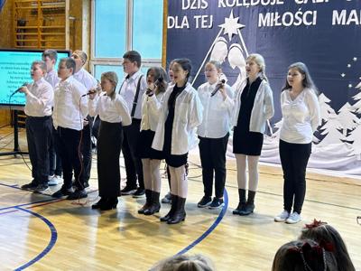 Magiczna atmosfera Świąt Bożego Narodzenia zagościła na dobre w naszej szkole. 17 grudnia po południu tłumnie zebraliśmy się na sali gimnastycznej na Szkolnym Koncercie Kolęd i Pastorałek. Wszystkie klasy, przedszkolaki i zerówka przygotowali najpiękniejsze kolędy i pastorałki. Także nasz Szkolny Ludowy Zespół ,,Podchlebnicki” zaprezentował swój świąteczny repertuar.