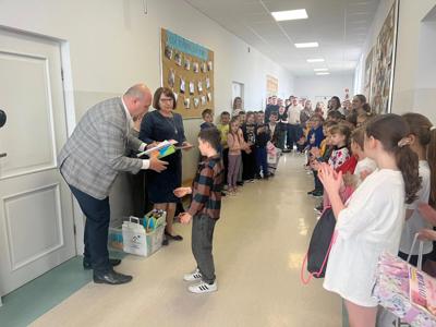 Gościliśmy dziś Pana Wójta Gmina Rawa Mazowiecka, który osobiście wręczył nagrody dla uczniów biorących udział w konkursie ,,Najpiękniejsze Wielkanocne Pisanki” organizowanym przez Gminny Ośrodek Kultury w Matyldowie.