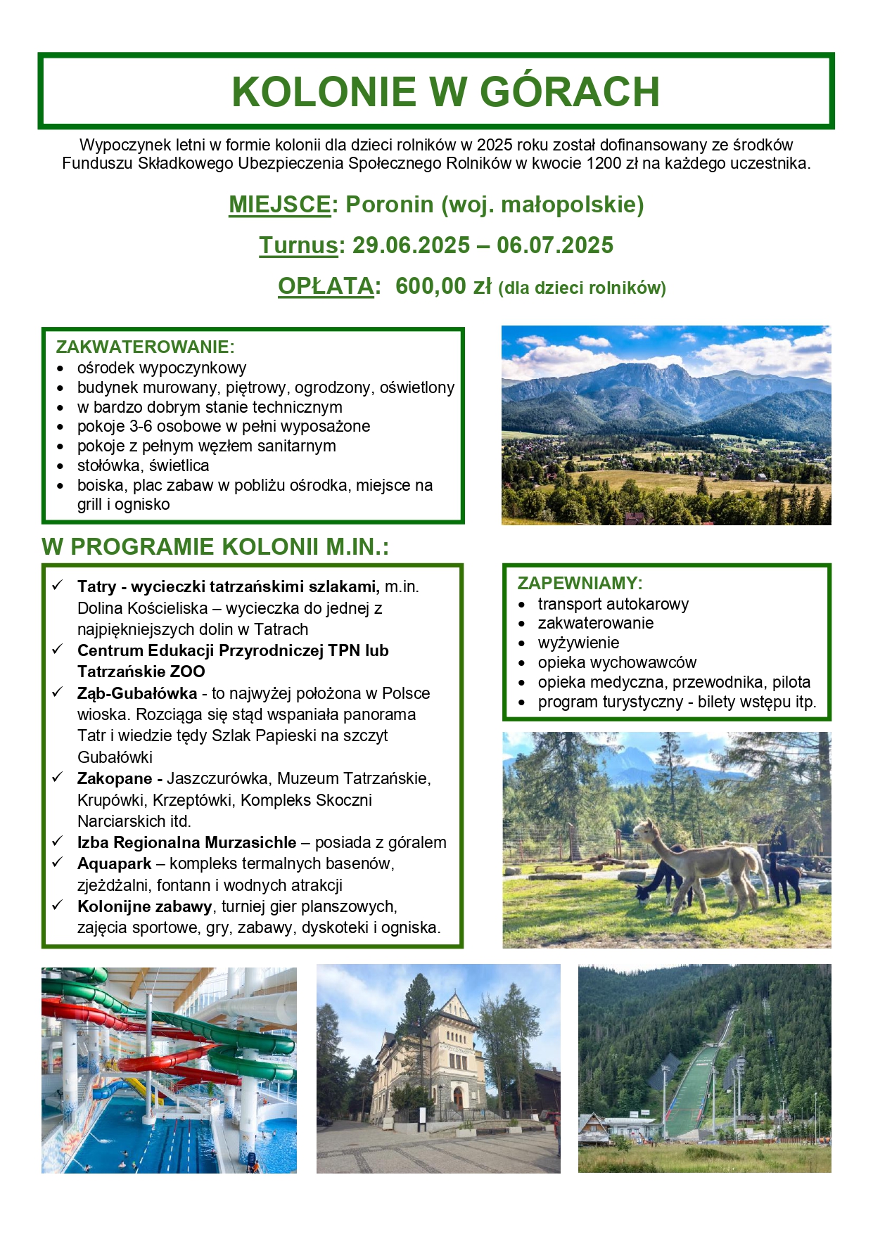 przekazujemy informacje nt. kolonii organizowanych dla dzieci rolników.